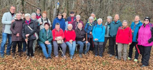 Treffpunkt zur letzten Wanderung in diesem Jahr ist um 13.30 h der REWE-Parkplatz. Von dort aus geht es mit den Pkws zum Parkplatz „Raue Wiese“. Dieser liegt zwischen Bartholomä und Böhmenkirch auf der linken Seite. Hier führt ein ca. 6 km langer Weg rund um Rötenbach. Die Wanderführung hat Klaus Füssel, der unter der Tel.-Nr. 07328-9247680 gerne noch weitere Auskünfte gibt. Auf dem Heimweg erfolgt eine Einkehr im Gasthaus „Wental“. Gäste sind immer herzlich willkommen.